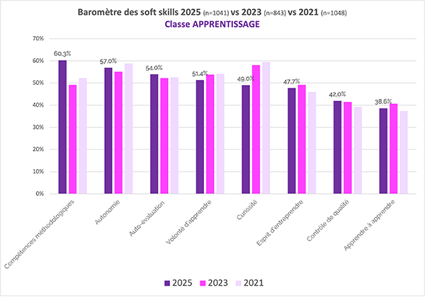 Au contraire, la compétence « Compétence méthodologique » n°1 de la classe « apprentissage » cette année, était en quatrième position en 2023 et cinquième position en 2021.